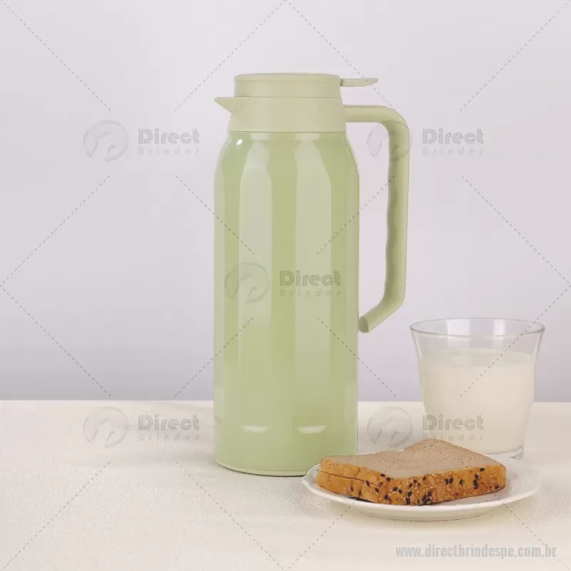 Garrafa térmica com capacidade de 1,4 litros, fabricada em aço inoxidável, possui parede dupla e tampa com alavanca de acionamento. Com tampa, alça e base plásticas, a garrafa possui um design com ondulações em relevo e acabamento brilhante. - - DRTPEGAT081