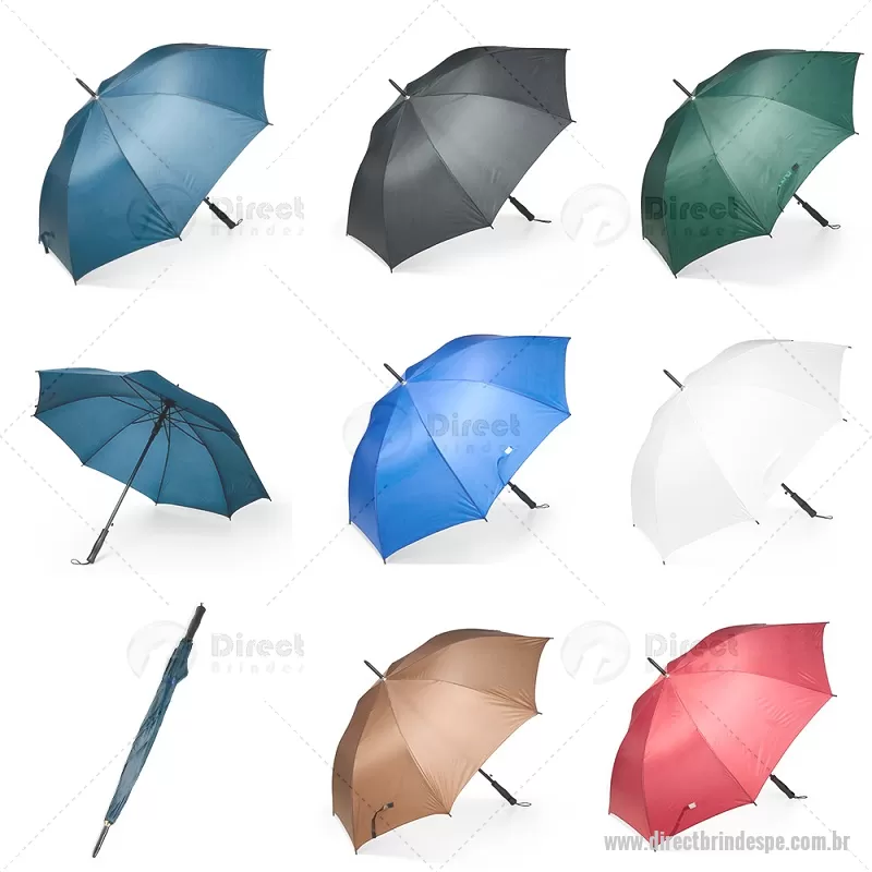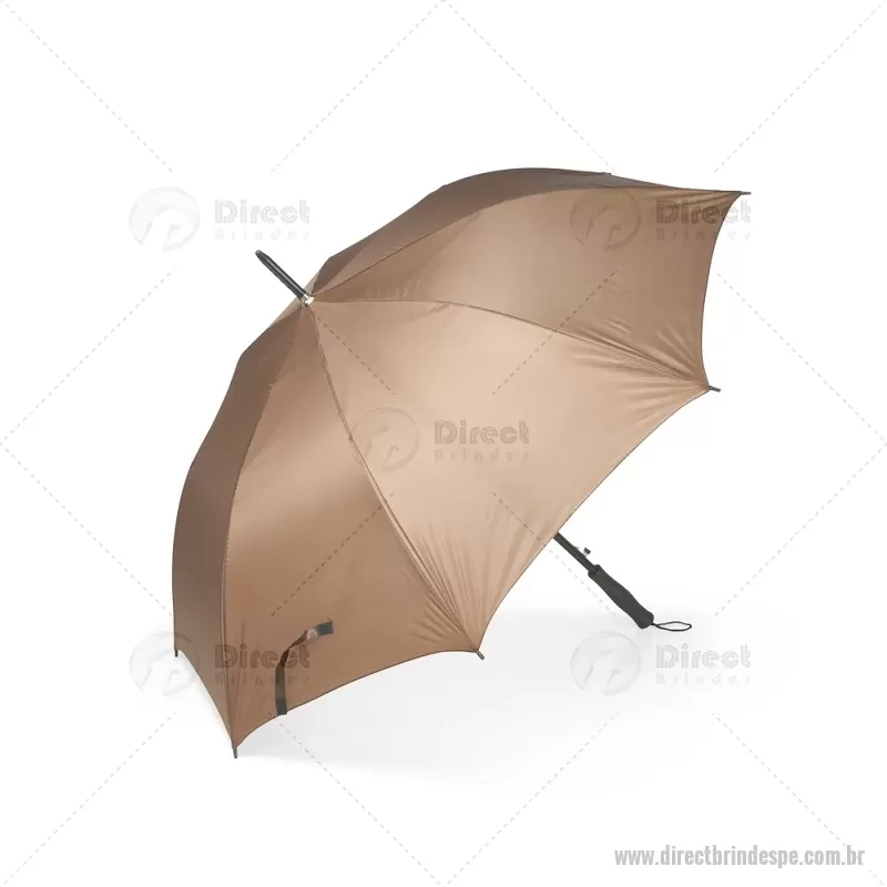 Guarda-chuva confeccionado em poliéster, com sistema de abertura automática para maior praticidade. Possui estrutura metálica resistente com oito varetas e cabo em plástico, acompanhado de alça em nylon para facilitar o transporte e o manuseio no dia a dia. - - DRTPEGCH053