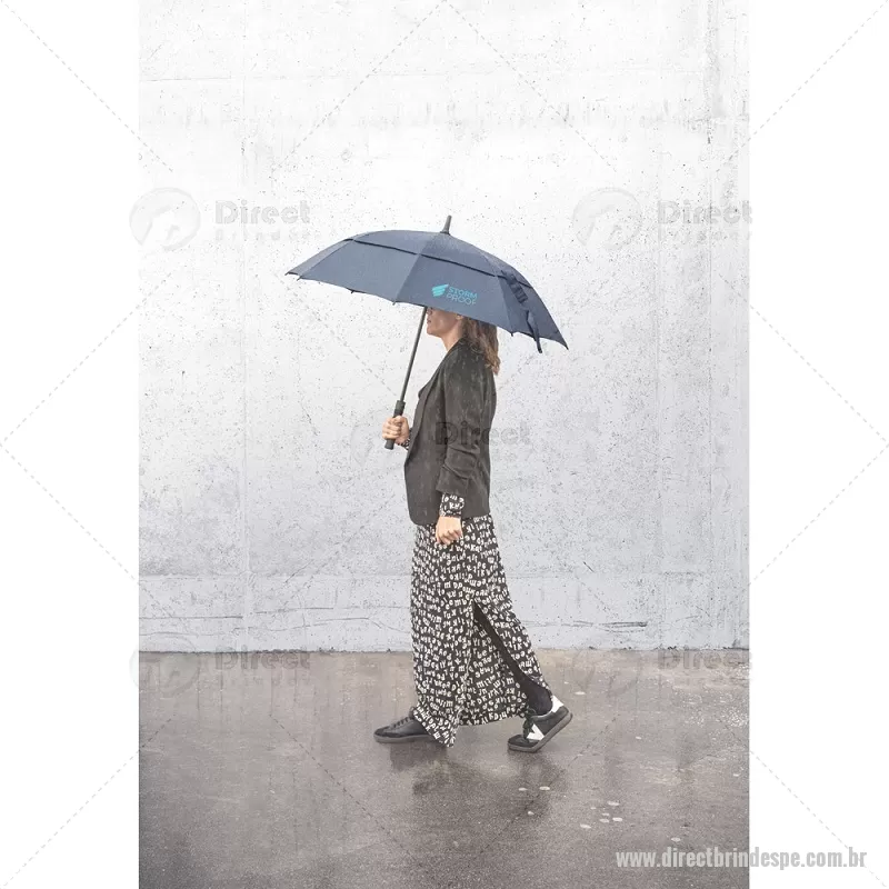 Guarda-chuva em 100% poliéster reciclado 190T (100% rPET) com abertura automática, com varetas em fibra de vidro e pega em ABS reciclado. Guarda-chuva com abertura automática e à prova de vento. Fornecido em bolsa de poliéster reciclado. Medidas:ø1055 x 840 mm Peso do Produto (g.): 543 - - DRTPEGCH051