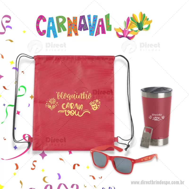 Kit Carnaval 3 Peças Kit Torcida Copa do Mundo Contém: 1 Mochila Saco em Poliéster Tamanho total aproximado (CxL): 41 cm x 34 cm - Gravação em Silk screen 1 cor (MCS032) 1 Copo Térmico 500ml com tampa e abridor de garrafa. Confeccionados com dupla parede de inox, isolada a vácuo. Conservação aproximada líquidos quentes: 1h / Conservação aproximada líquidos gelados: 7h / Conservação aproximada líquidos com gelo: 15h Ideal para bebidas geladas ou quentes. - Gravação laser.(CPO083) 1 Óculos de sol personalizável com proteção de 400 UV. Consultar cores disponíveis. - Gravação em Silk screen 1 cor (OCL001) * Verificar cores de produtos Disponíveis. - - DRTPEKIT029