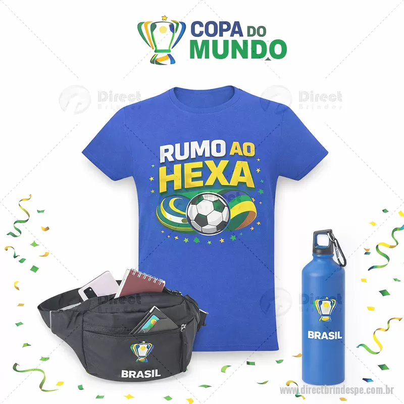 Kit Carnaval 3 Peças Kit Torcedor Copa do Mundo - Vai Brasil Contém: 1 Pochete de Poliéster com três compartimentos bem distribuídos, ela oferece um bolso traseiro seguro e de fácil acesso, um bolso central com rede interna para separar e organizar itens, além de um bolso frontal ideal para objetos menores. Com alça de nylon ajustável para se adaptar a cada pessoa. - Gravação em Silk screen 1 cor (POC013) 1 Squeeze Alumínio com Acabamento Matt. Com tampaem PP mosquetão rosqueável. Capacidade até 800 ml. Food grade. ø73 x 259 mm. - Gravação em Silk screen 1 cor (SQM052) 1 Camiseta unissex de corte regular em malha 100% polyester fiado (135 g/m2) com fio 30/1 polyester. Com gola em ribana 1,5x1,5 com fita de reforço e com costura dupla nas mangas, barra de fundo e laterais. Tamanhos: P, M, G, GG - Gravação em Transfer Colorido (CMS006) * Verificar cores de produtos Disponíveis. - - DRTPEKIT031