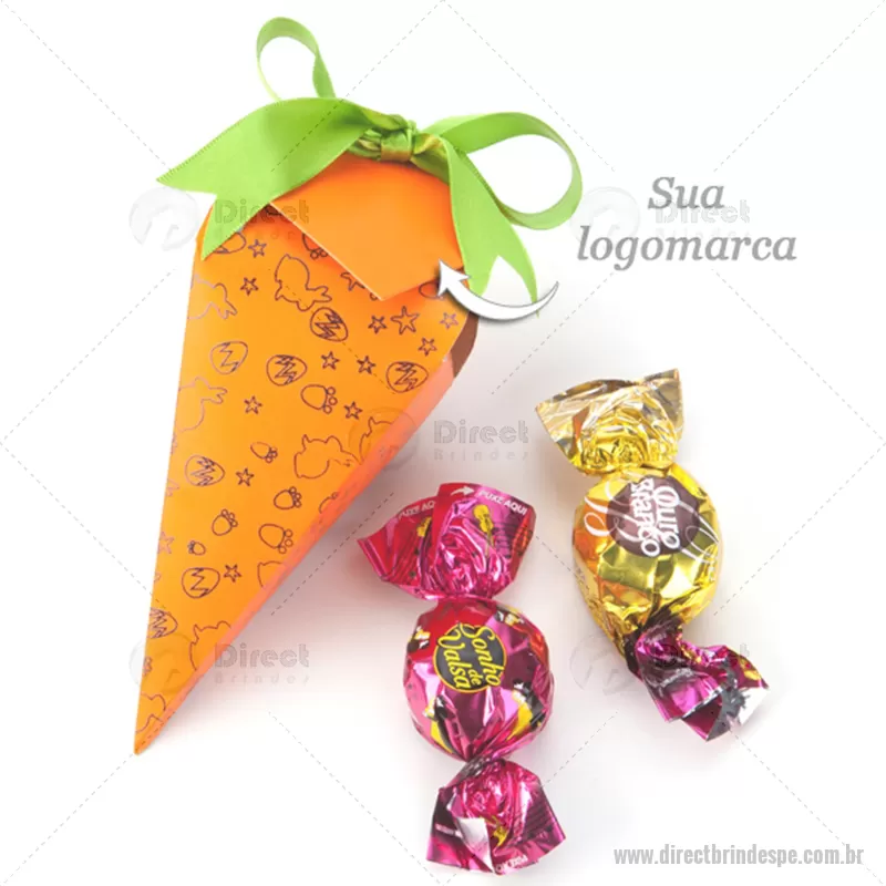 Kit Páscoa caixa Formato cenoura com bombom sonho de valsa/ouro branco (02 unds). Caixa na cor Laranja ou Kraft. - - DRTPEKIT023