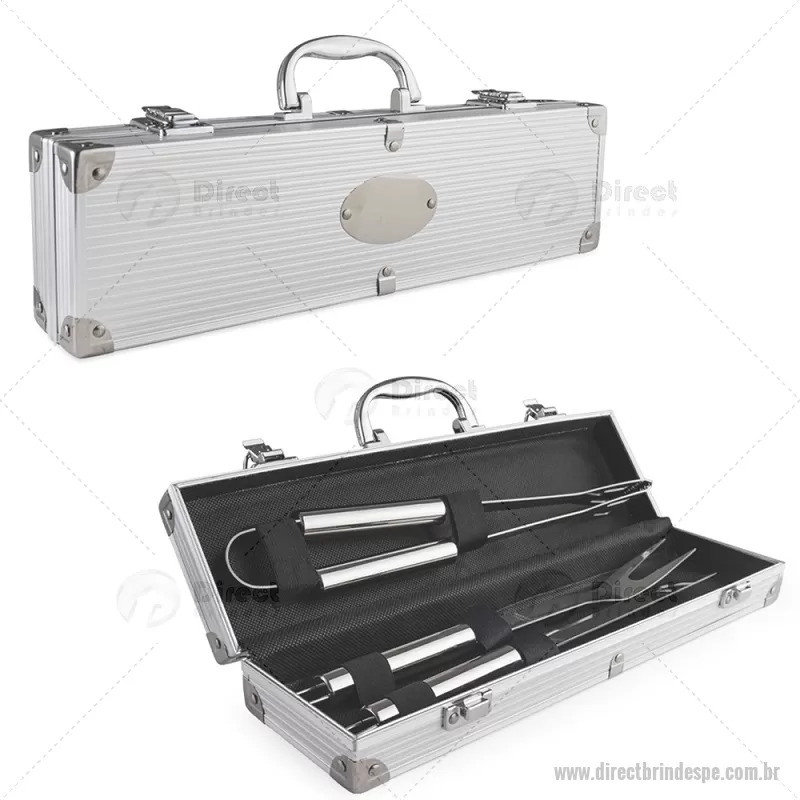Kit Churrasco 3 Peças Prepare churrascos deliciosos com nosso kit de três peças, ideal para quem busca qualidade e precisão no preparo de carnes e outros alimentos. O conjunto inclui uma pinça, um garfo e uma faca de sete polegadas, acompanhados de uma elegante maleta de alumínio com plaquinha para personalização, garantindo mais exclusividade e organização. Altura : 11,4 cm x Profundidade : 7,9 cm Comprimento : 36,8 cm Peso aproximado (g): 676 - - DRTPEKCH090