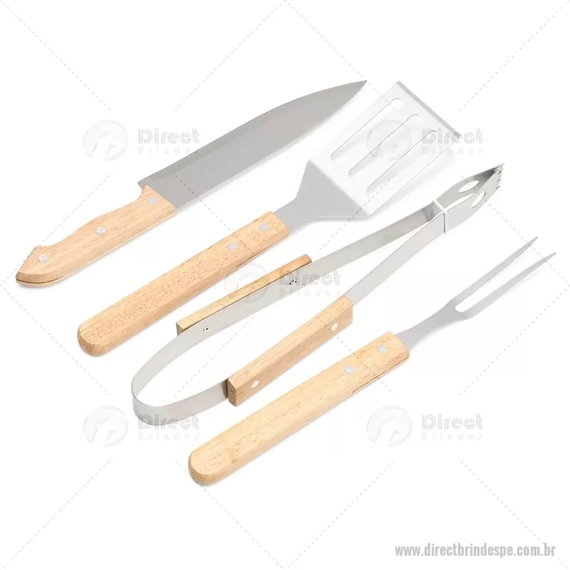 Kit Churrasco 4 Peças em estojo de nylon com alça. Possui: pegador, garfo, faca e espátula de madeira, acompanha plaquinha para personalização, proteções plásticas(faca e garfo) e parte interna com elástico para guardar as peças. Medidas Kit: Largura : 12 cm x Comprimento : 38,4 cm Medidas Pegador (A x L): 34 cm x 2,8 cm Medidas Garfo (A x L): 32 cm x 2,6 cm Medidas Faca (A x L): 33 cm x 3,8 cm Medidas Espátula (A x L): 32,6 cm x 7,1 cm Peso aproximado (g): 589 - - DRTPEKCH083