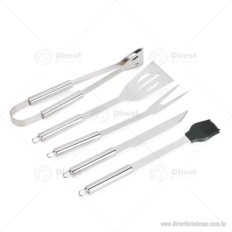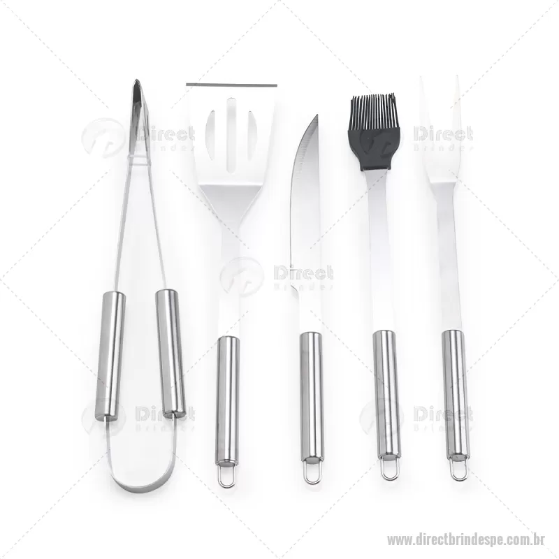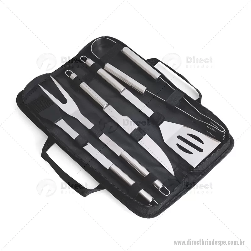 Kit Churrasco 5 Peças Descrição: Kit churrasco com cinco peças em inox. O conjunto inclui: uma faca de 6 polegadas, um garfo, uma espátula, um pincel com cerdas de silicone e um pegador. Acompanha estojo em nylon com um par de alças para transporte e placa metálica personalizável com verso autoadesivo para fixação. Altura : 4,5 cm x Largura : 11 cm x Comprimento : 38,5 cm Peso aproximado (g): 662 - - DRTPEKCH094