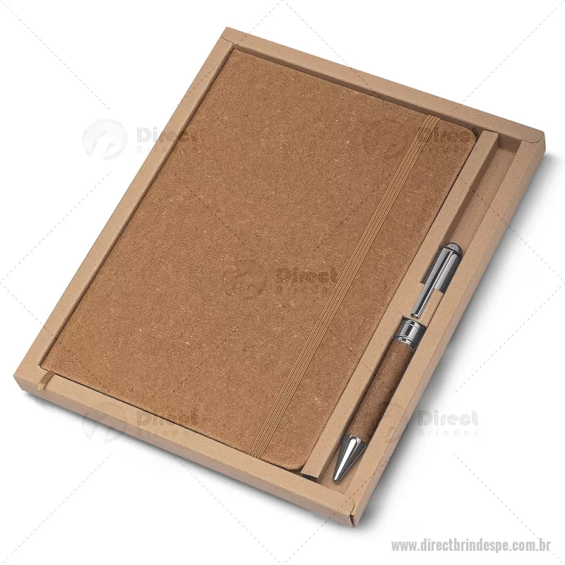 Kit caderno de anotações e caneta metálica. O kit acompanha a caneta metalica com detalhes em material reciclável, e sua embalagem é presentável feita de papel kraft. O caderno de anotações é feito de material reciclável que imita a representação do couro, em capa dura com miolo 80 folhas pautadas na cor bege. Dimensão do Produto: (21,3x14,5cm) Caderno Peso do Produto: (0,245kg) Caderno Peso do Produto: (0,028kg) Caneta - - DRTPEKES063