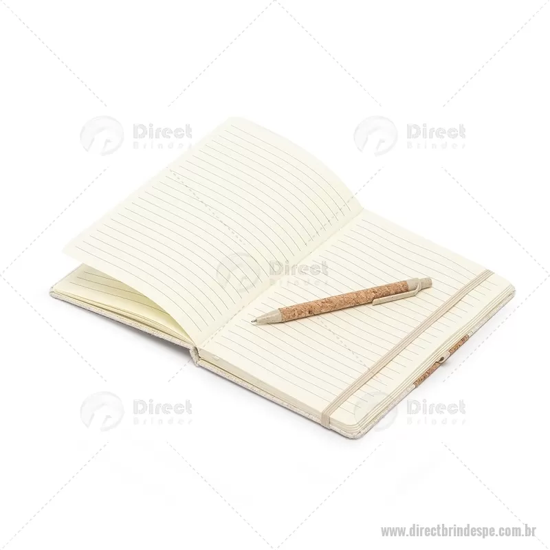 Kit Ecológico 2 Peças. Este kit contém uma Caderneta A5 em linho com detalhe em cortiça e suporte para caneta, marcador de página em cetim, aproximadamente 82 folhas com pauta e caneta de cortiça com detalhes em palha de trigo, carga esferográfica azul 1.0mm e acionamento por clique. Largura : 20 cm x Espessura : 2 cm x Comprimento : 24 cm Peso aproximado (g): 275 - - DRTPEKES066