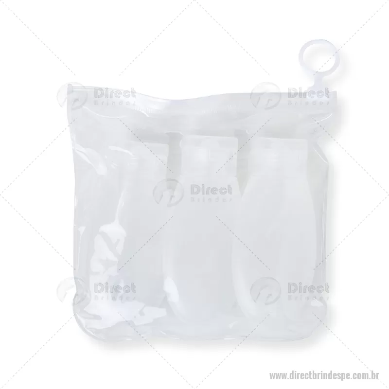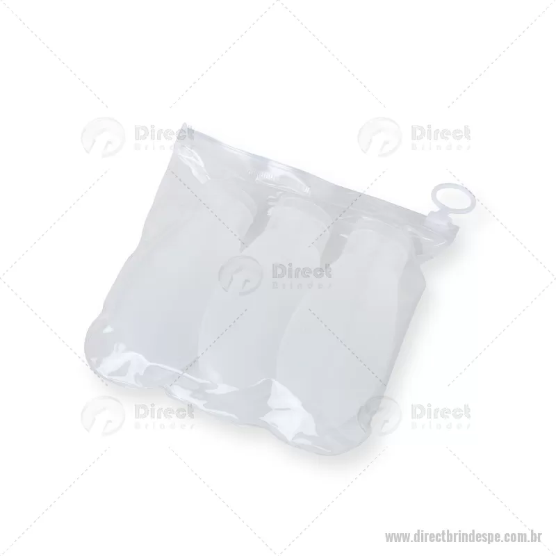 O kit viagem 3 Peças é a escolha perfeita para quem busca praticidade e organização durante as viagens. O conjunto inclui três frascos plásticos de 60ml, ideais para transportar líquidos e produtos de higiene pessoal, respeitando as normas de segurança para viagens aéreas. O estojo de PVC com ziplock mantém os itens organizados e seguros, além de evitar que a umidade espalhe para a área externa, caso os itens estejam molhados. Estojo: Altura : 14,9 cm x Largura : 15,1 cm Tamanho total aproximado (CxL): Frasco 10,7 cm x 5,1 cm Peso aproximado (g): 50 - - DRTPEKVG018