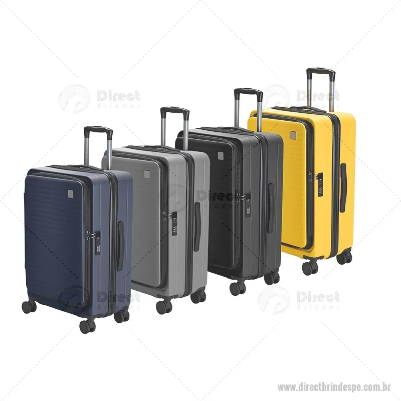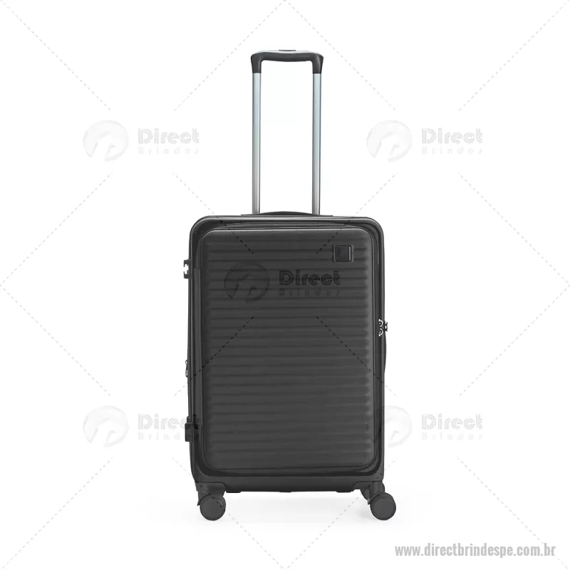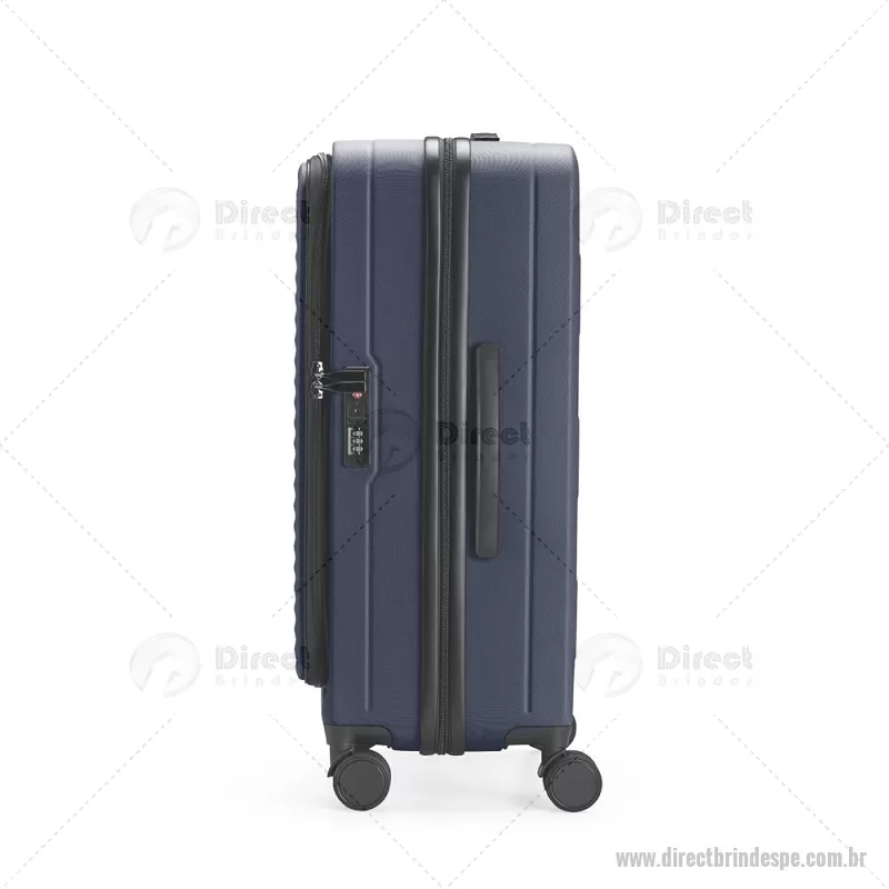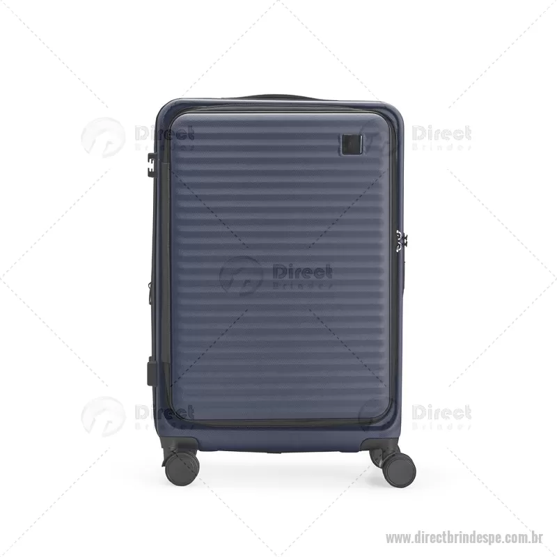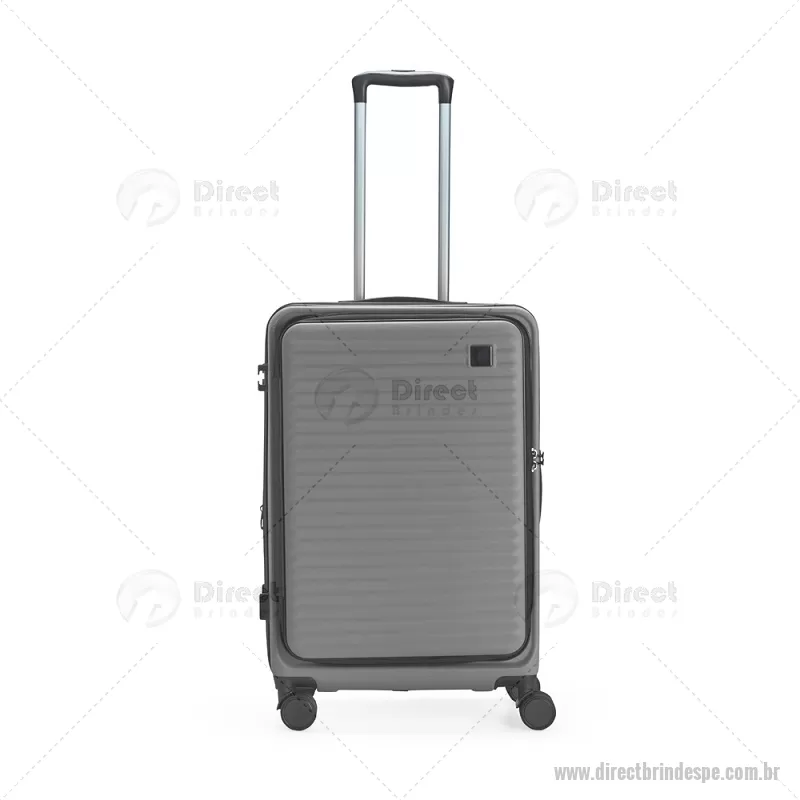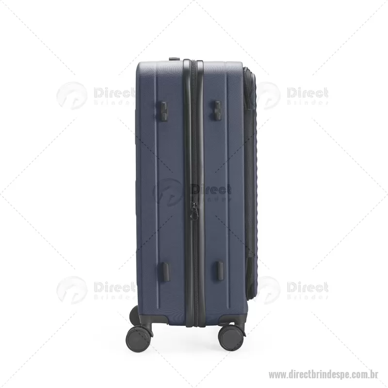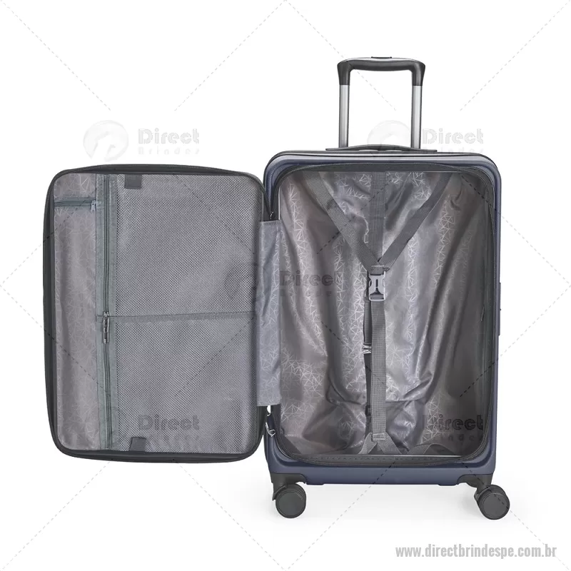 Mala de viagem com capacidade de 66 litros, fabricada em plástico ABS resistente e equipada com cadeado TSA embutido para maior segurança. Possui abertura frontal com compartimentos internos organizadores, zíperes e cinta compressora, além de zíper expansível que amplia o espaço interno. Conta com puxador retrátil de três níveis, duas alças de mão, apoios e ganchos laterais, além de rodinhas com giro 360° para deslocamento fácil. Acompanha plaquinha metálica grafite para personalização. - - DRTPEMC250