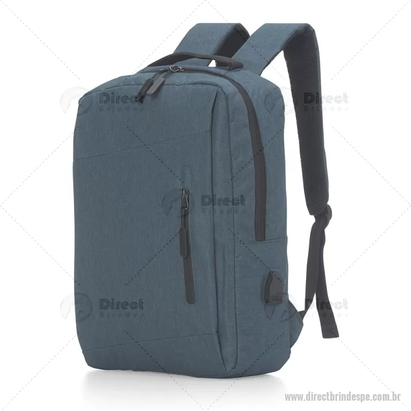 Mochila confeccionada em nylon com compartimento para notebook até 15,6 polegadas. Contém compartimento grande com divisórias para documentos, eletrônicos e caneta, dois compartimentos frontais com abertura vertical, bolso lateral e adaptador USB externo com cabo acoplado, permitindo a conexão de um carregador portátil de dentro da mochila e transferência da carga para o lado externo, ocultando o carregador e viabilizando a utilização do celular durante o processo. Contém zíperes com pegadores plásticos, alça de mão em nylon e alças para as costas ajustáveis com revestimento espumado antitranspirante. - - DRTPEMC137