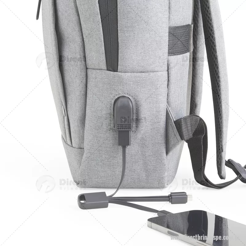 Mochila de nylon 21 Litros com dois compartimentos, sendo o principal com bolso para notebook 15,6. Com divisórias internas para acessórios, a mochila possui bolso lateral, suporte externo USB e alça para engate em malas de viagem. - - DRTPEMC193