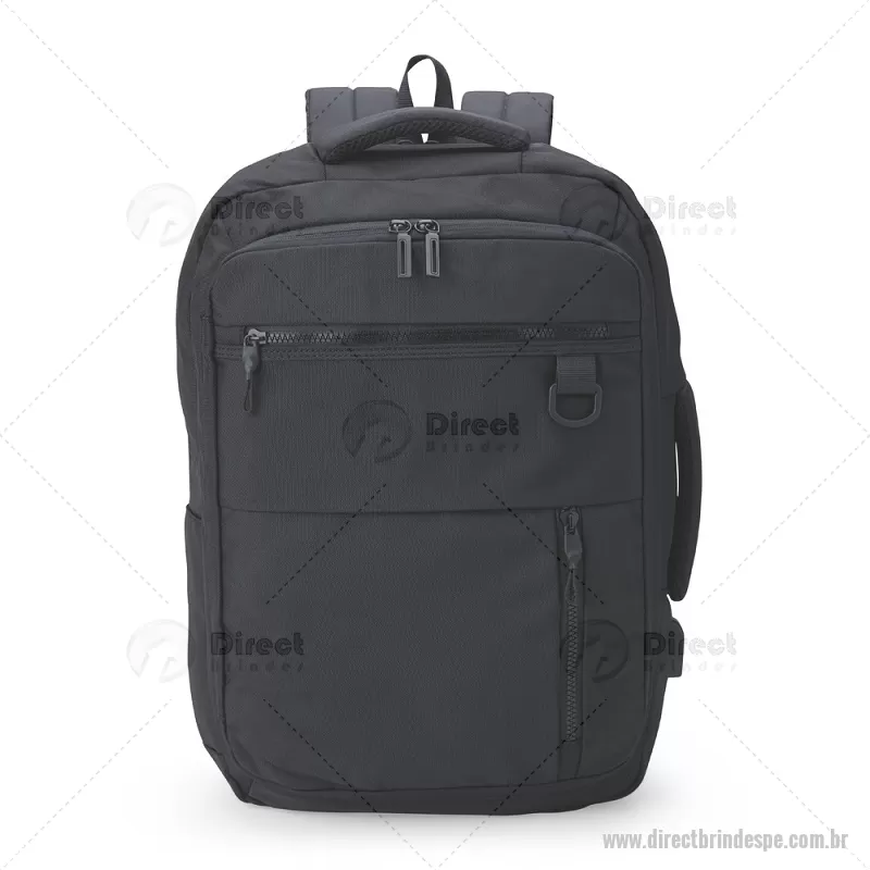 Mochila confeccionada em Nylon 20 Litros com 4 compartimentos, sendo o principal com bolso para notebook 15,6. Possui um bolso externo, bolsos e divisórias internas para acessórios, a mochila possui suporte externo USB, alça com bolso integrado para cartões, alça para engate em malas de viagem e duas alças de mãos, sendo um delas para o transporte da mochila no formato pasta. - - DRTPEMC213