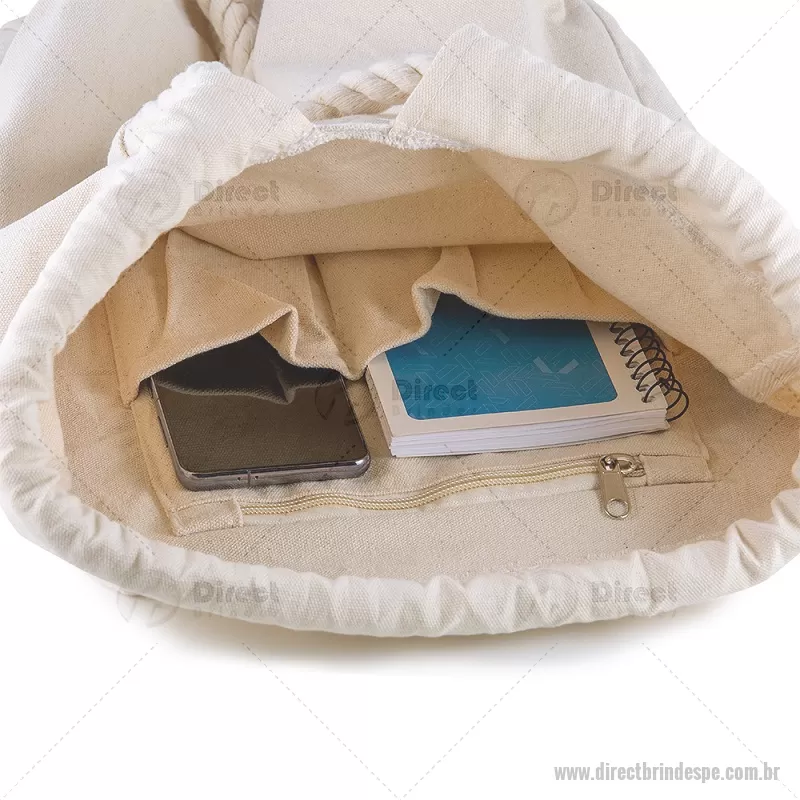 Sacola/Mochila em algodão cru, com alça lateral e alça trançadas para o transporte, permitindo seu uso como mochila ou sacola. Compartimento interno. Ideal para o dia a dia. Dimensão do produto: 42x35x14,5cm Gramatura do produto: 450g/m2 Peso do produto: 0,322kg - - DRTPEMCS033