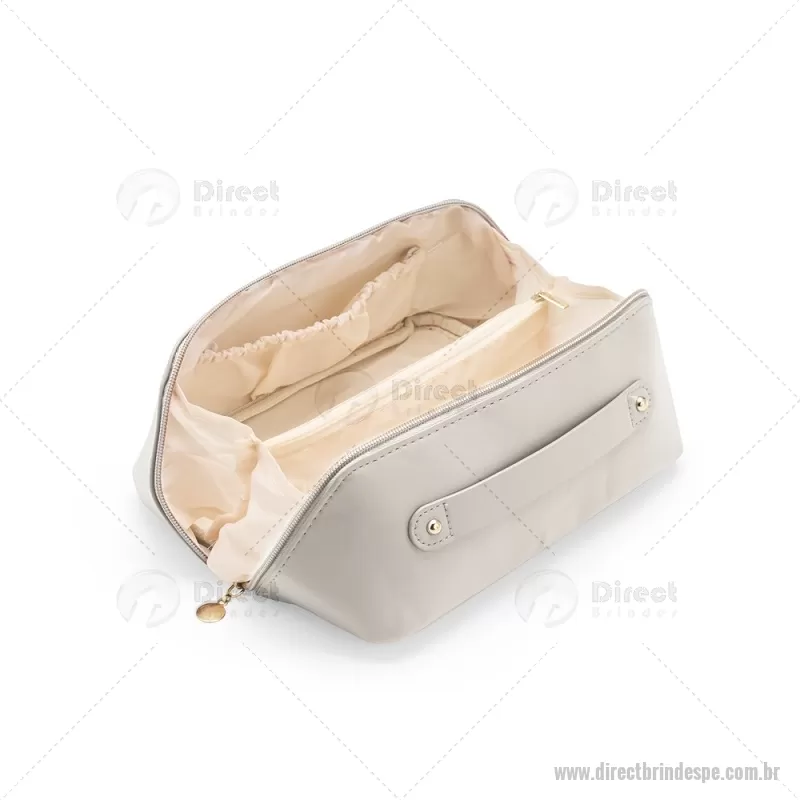 Nécessaire em (PU) poliuretano impermeável com abertura em 180 graus inspirada no formato de concha. O compartimento interno conta com dois bolsos laterais abertos e um, localizado na parte central, com fechamento em zíper. Possui alça para transporte. Altura : 11 cm x Largura : 22,5 cm x Profundidade : 9,5 cm Peso aproximado (g): 108 - - DRTPENC143