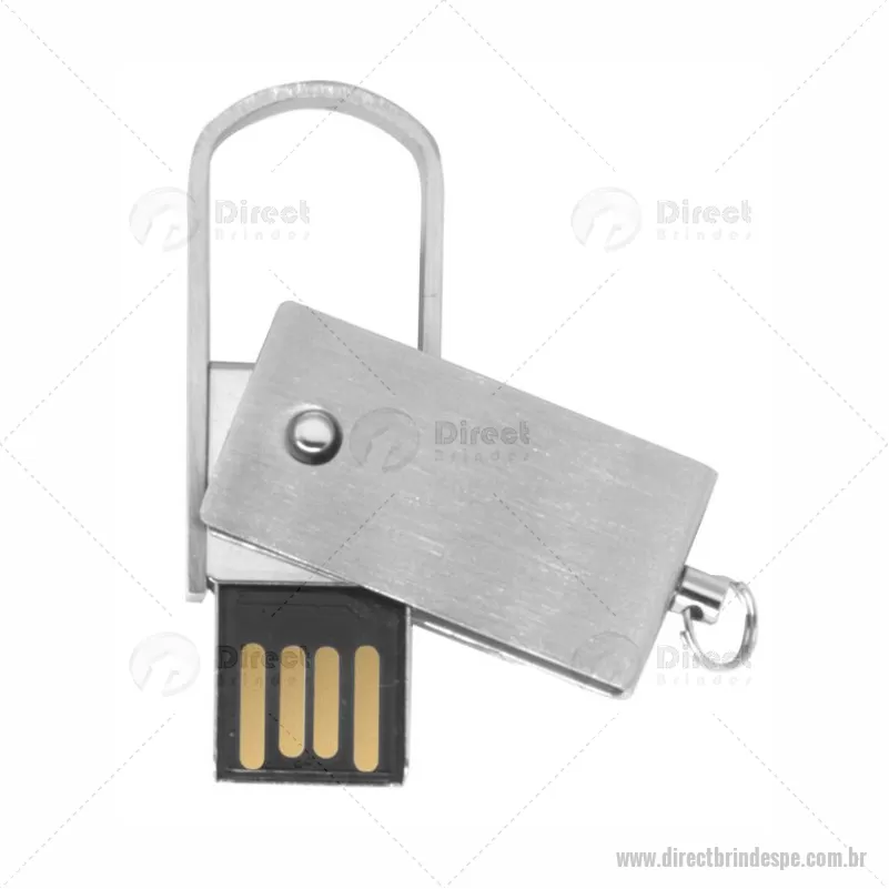 Mini pen drive giratório e retrátil. Todo em metal não acompanha chaveiro. Para utilização basta puxar o suporte pelas laterais e rotacionar a peça. Capacidade 4GB. Ideal para brindes corporativos e ações de marketing. - - DRTPEPEN121-4GB
