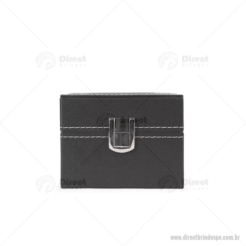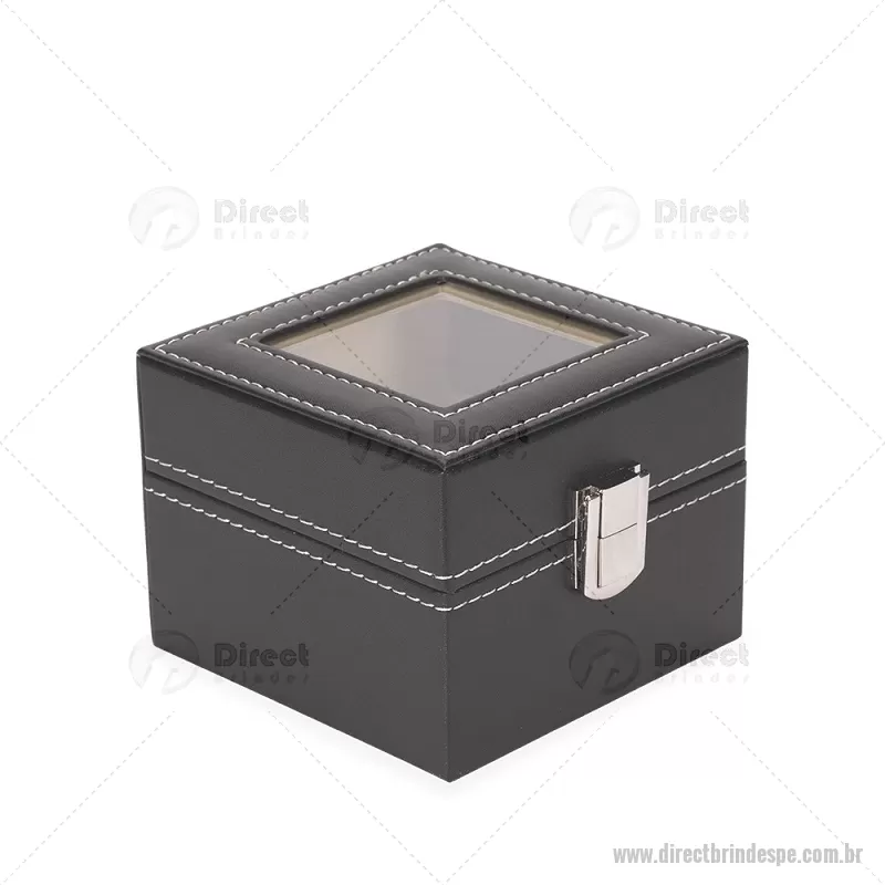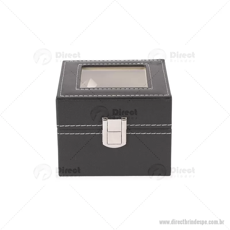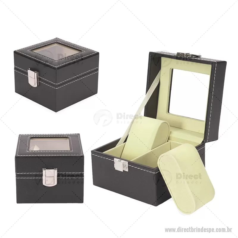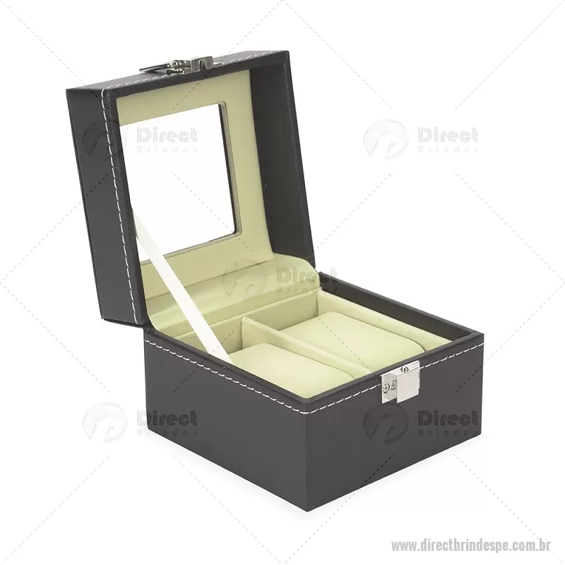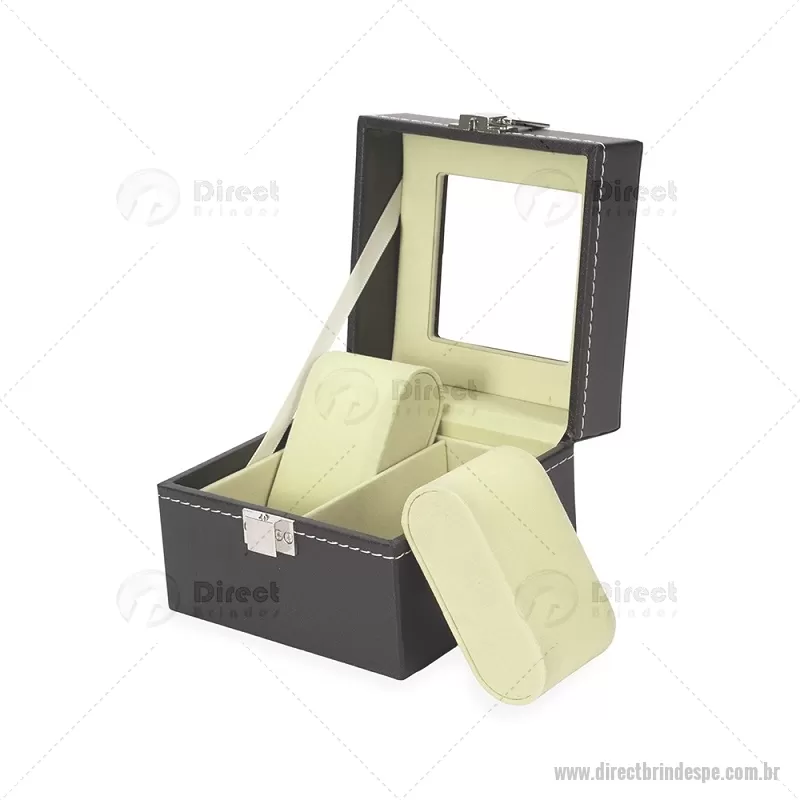 Porta relógios com acabamento externo em couro sintético à base de PVC e interior revestido em veludo macio. Possui duas divisórias com almofadas removíveis para melhor acomodação das peças, tampa com visor em vidro que facilita a visualização e trava de segurança que garante o fechamento adequado do estojo. Ideal para organizar e proteger relógios com elegância. - - DRTPEPREL001