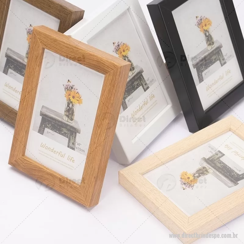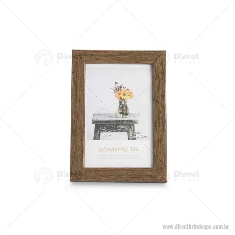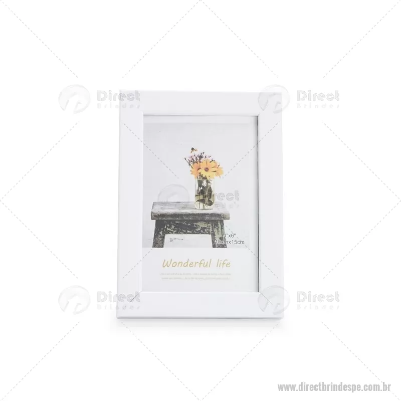 Porta-retratos para fotos no tamanho 10 x 15 cm, indicado para uso tanto na posição vertical quanto horizontal. Possui moldura em PVC, visor frontal em acetato, fundo em MDF e travas metálicas que garantem firmeza e fácil troca da imagem. Ideal para decorar ambientes com praticidade. - - DRTPEPR010