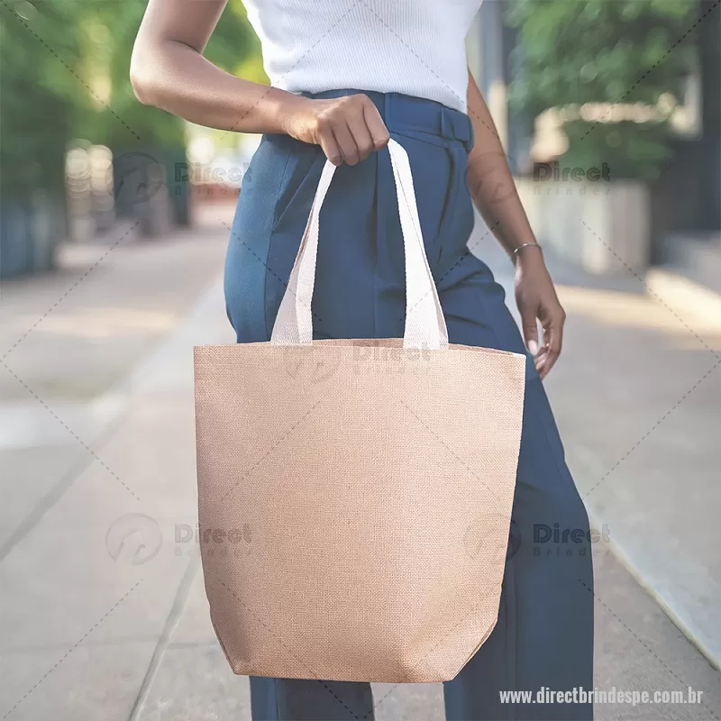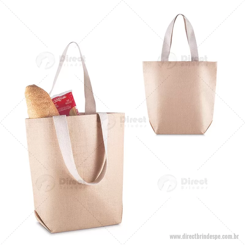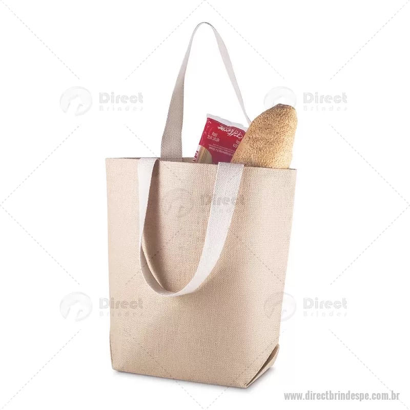 Sacola Ecológica em Juta 360g/m² (40x38x15cm) Sacola com alça em algodão cru e base plana ,interior revestido em plástico PP. Alça com altura de 24 cm, ideal para transporte. Dimensão do produto: 38x40x15cm (AxLxP) Peso do Produto:0,176kg Volume: 20.2L - - DRTPESAC109