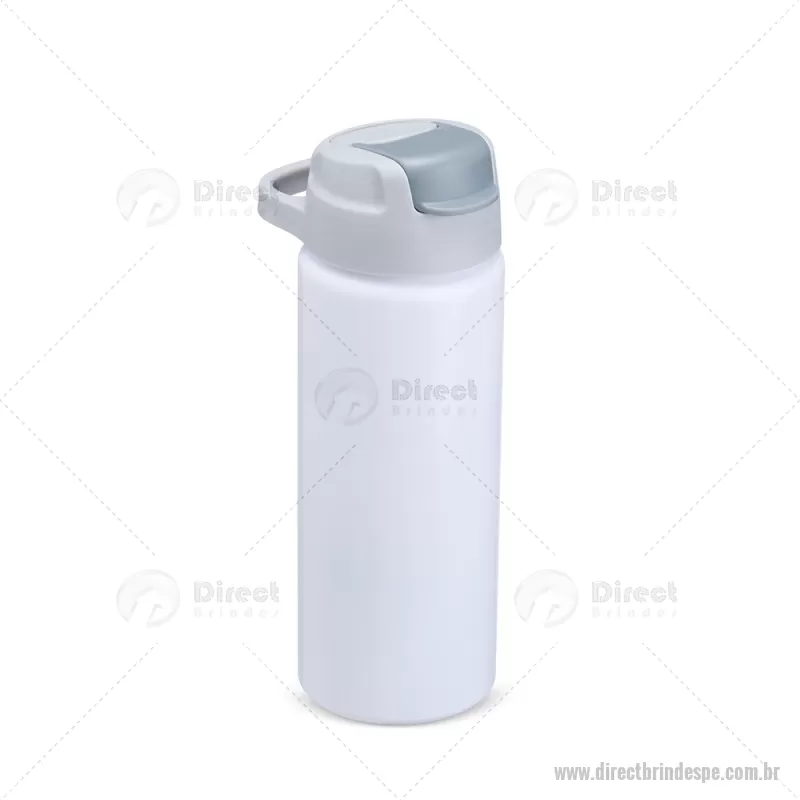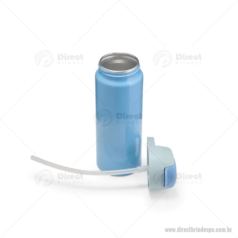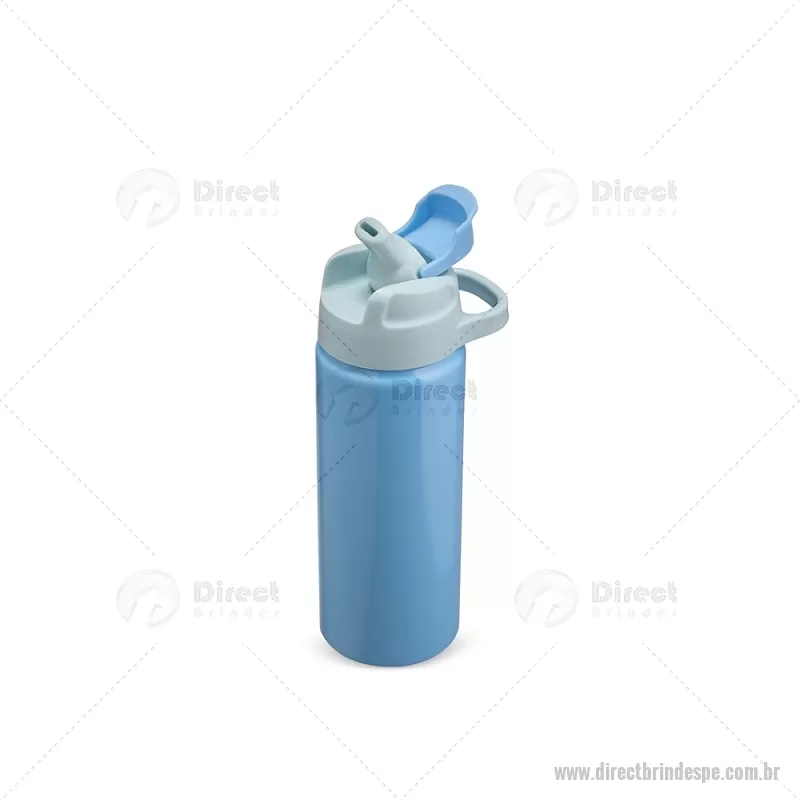 Squeeze de alumínio com capacidade máxima de 600ml. Possui tampa rosqueável em plástico com alça para transporte, protetor de bocal, bico flip top e canudo interno em plástico. Altura : 20,5 cm x Largura : 7 cm x Circunferência : 22 cm Peso aproximado (g): 117 - - DRTPESQM087